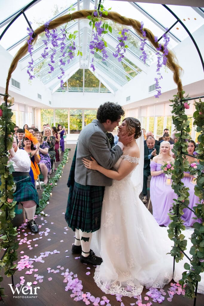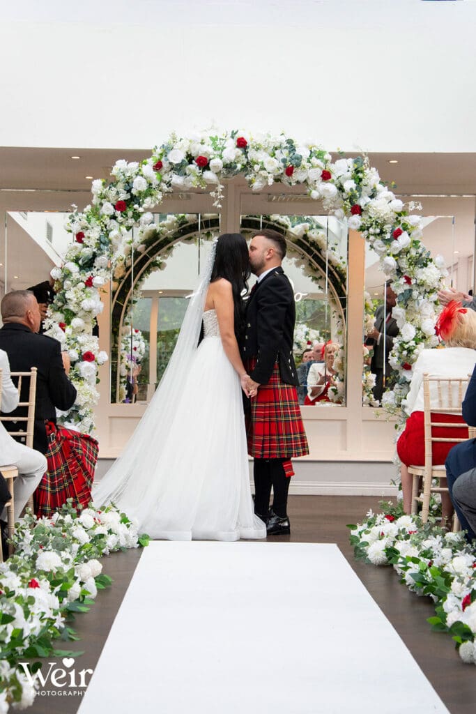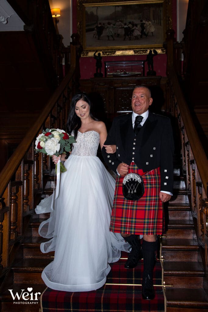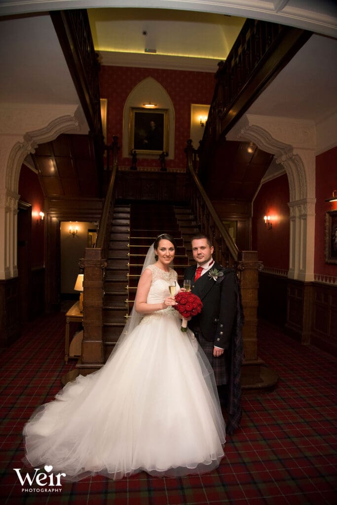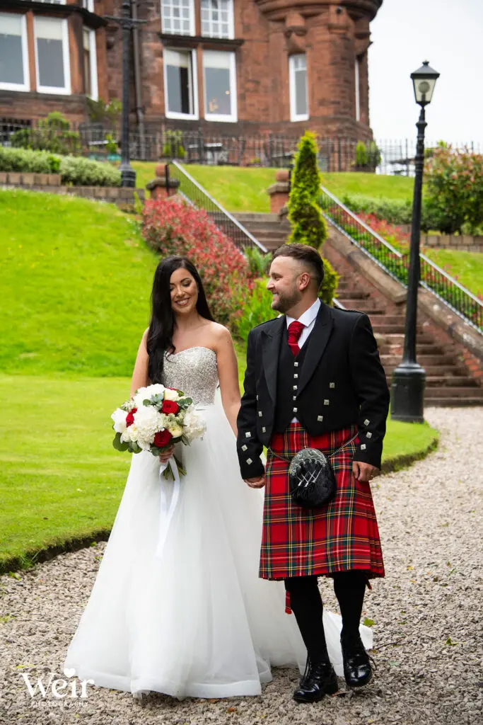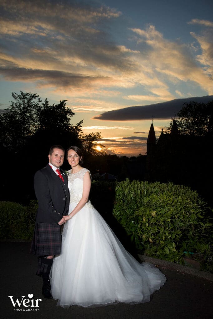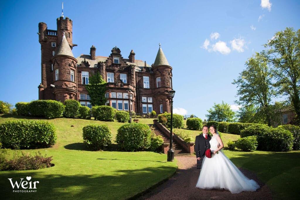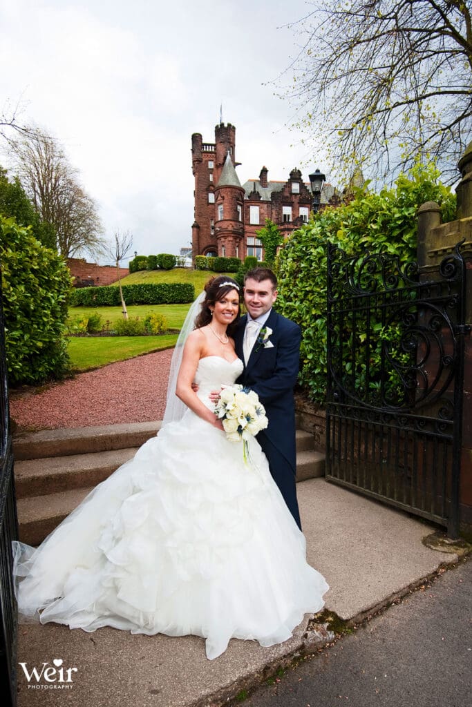 Sherbooke Castle, a magnificent Baronial Hotel crafted in rich red sandstone set in beautifully landscaped gardens in the leafy suburb of Pollockshields in Glasgow’s Southside. The hotel has luxury bedrooms and suites, a lounge bar, restaurant and meetings and event facilities for up to 200 guests. We have had the pleasure of attending many Sherbrooke Castle Weddings over the years and welcome the opportunity to do so each time.